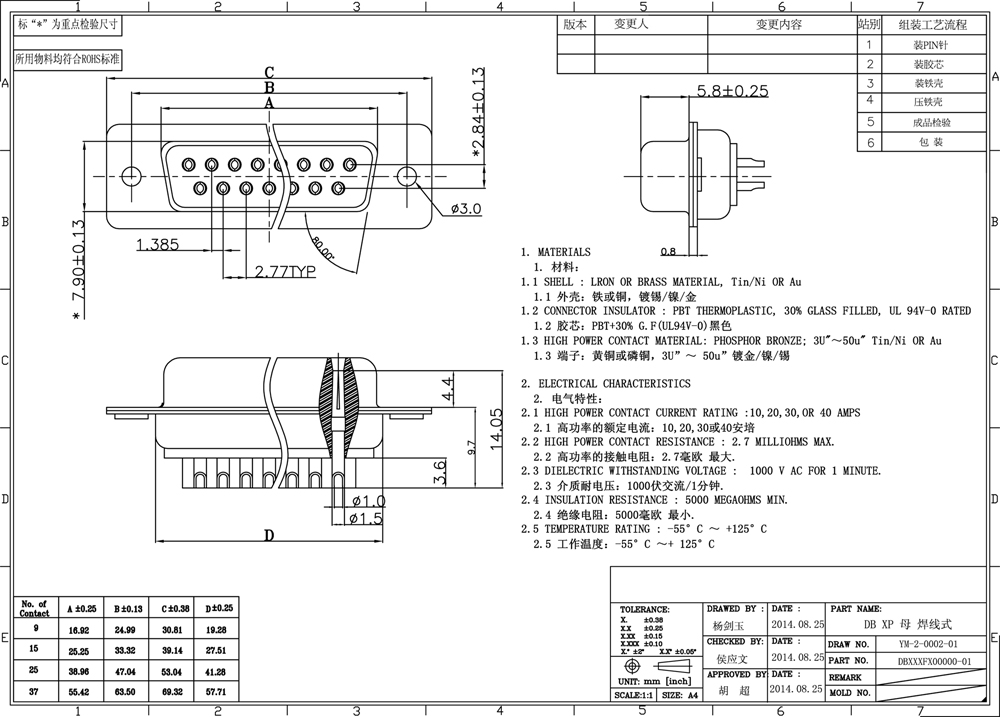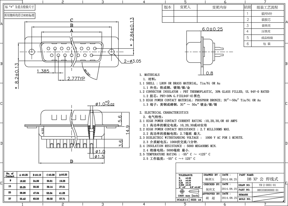 ,接觸件15芯,額定電流5A,電壓300V,連接方式直插式,魚叉卡扣式,螺絲固定式,接觸件鍍金,焊接部位有直接焊接,印制板有直式,90度彎角焊接,下圖是具體技術介紹: