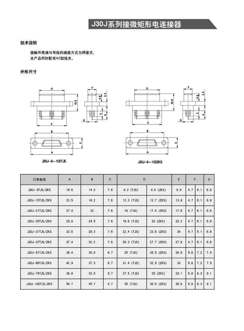J30J-31TJ微矩形連接器,一般用于航空航天測試設(shè)備,儀器儀表線路的連接,信號的輸送,體積小,芯數(shù)多,芯數(shù):9,15,21