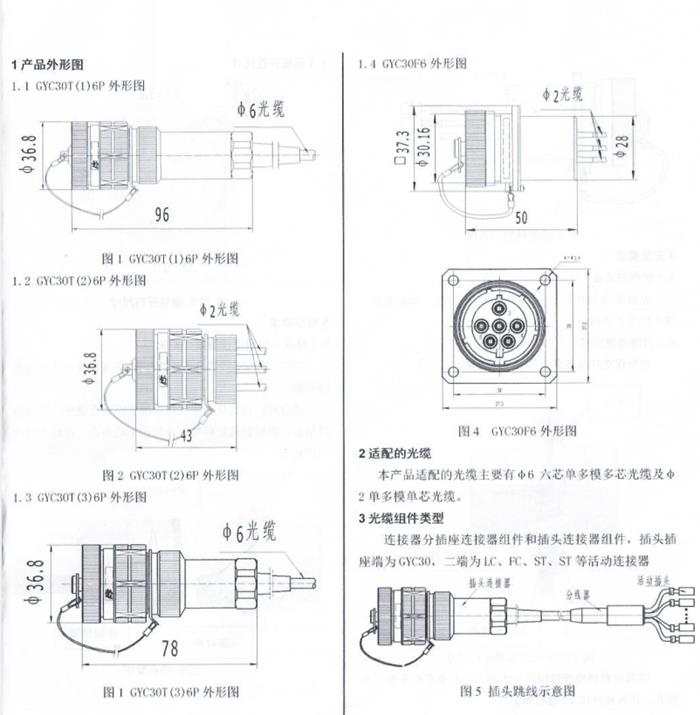 GYC30T(3)6P光纖連接器,是一個(gè)系列產(chǎn)品,適配的光纜主要有6mm六芯單多模多芯光纜及2mm單多模單芯光纜,插頭與插座