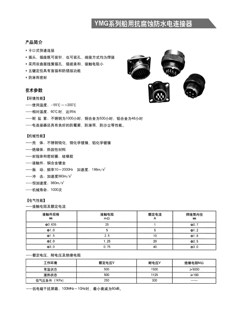 適用于濕熱環(huán)境,可耐1000小時(shí)鹽霧試驗(yàn):卡口式快速連接,插頭插座均為焊接。