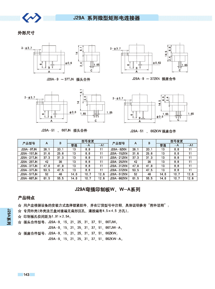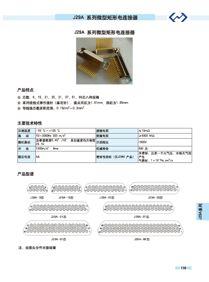 采用絞線式彈性插針(麻花針),接點間距為1.91mm,排距為1.65mm,