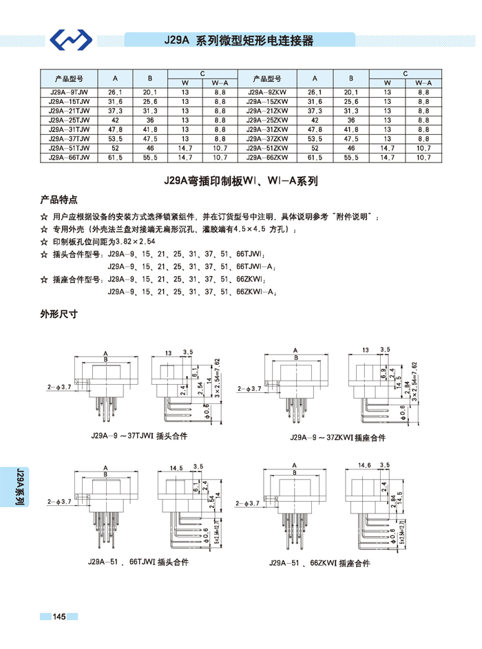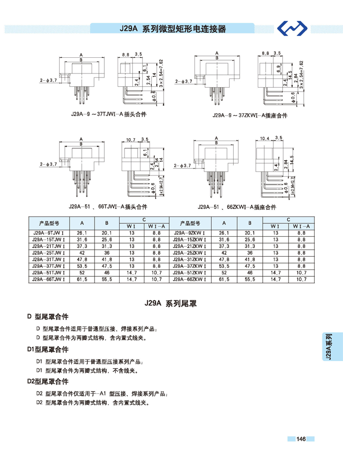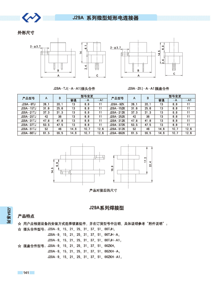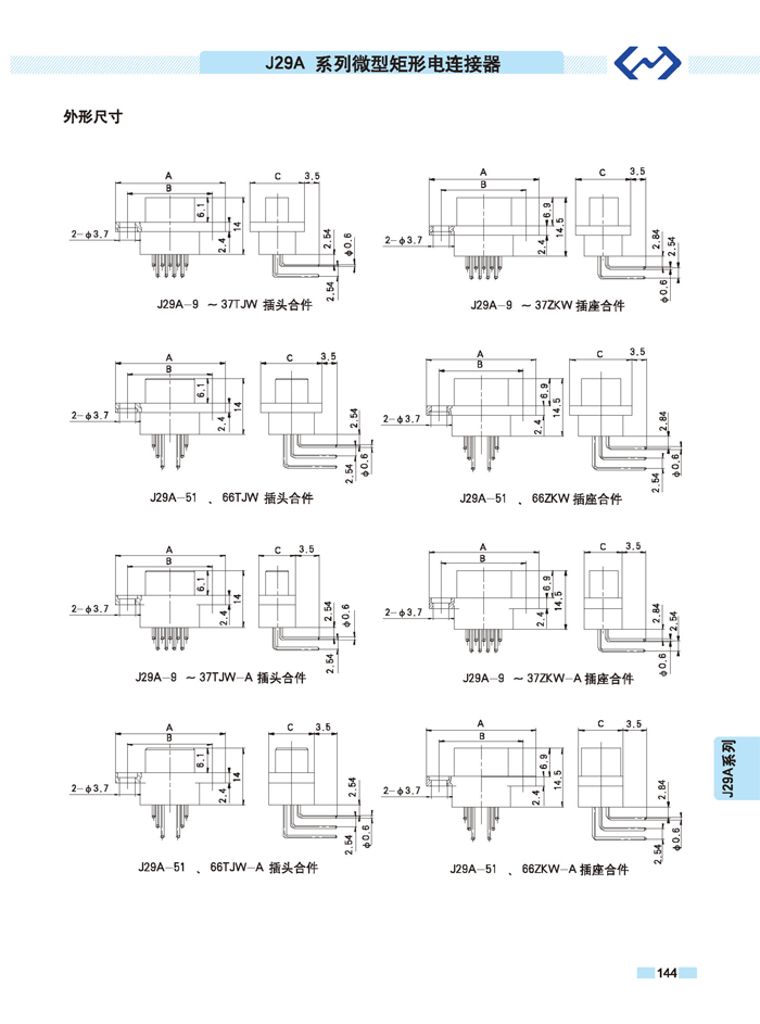 是矩形,體積小,芯數多,排列合理,與電纜線焊接方便。