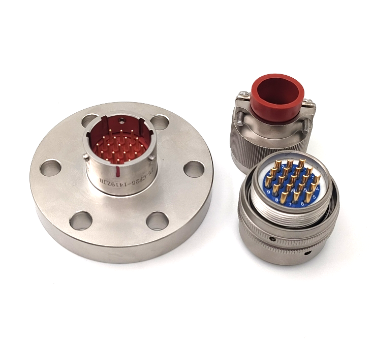 CF25法蘭 19芯 真空?qǐng)A形航空插頭 密封型,法蘭尺寸就是標(biāo)準(zhǔn)尺寸,完全吻合,在法蘭表面上設(shè)計(jì)不同芯數(shù)插座,采用特殊