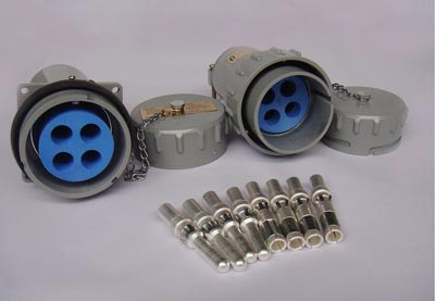 插頭和插座的連接方式為卡口式快速連接,接觸件與導線端接形式為壓接,接觸件采用彈性齒圈支承定位,后裝前拆結構。插頭座采用ZL-102壓鑄鋁合金,接觸件鍍銀,接觸可靠,接線方便,密封和絕緣性好,具有防水,防塵,防震等特點。