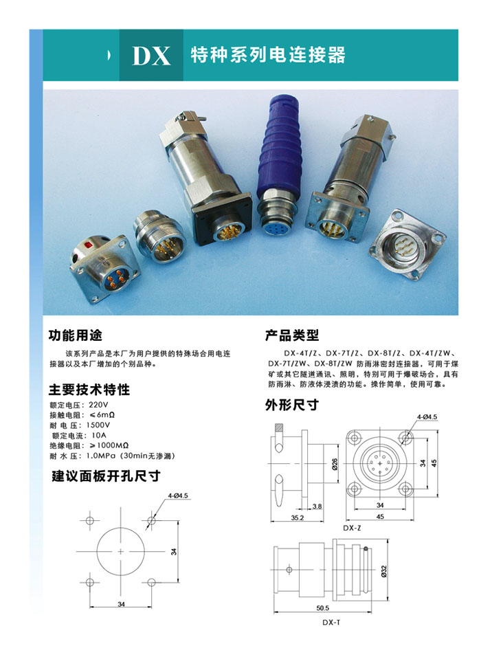 DX-7T/Z煤礦類防腐防爆電連接器,整體密封好,在淋雨,潮濕的環(huán)境下,防沙塵,防淋雨,在有火花的條件下能防爆,插頭與插座采用螺紋密封連接。選用不銹鋼材料,耐腐蝕,廣泛用于煤礦,測井,隧道燈場合。