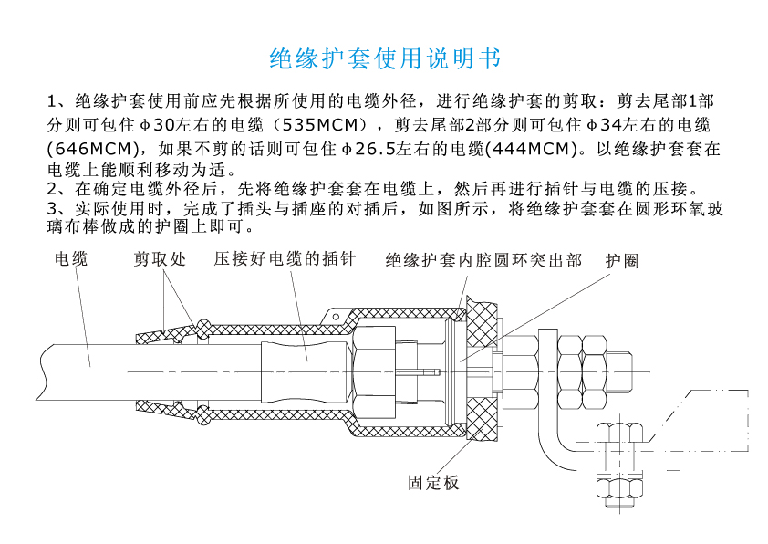 電后無擊穿,打火花現(xiàn)象,內(nèi)部采用線鼻子連接方式,螺絲固定。外面插針與插孔對插后,用絕緣套封死,防水防塵。