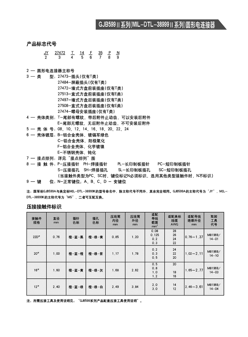 - GJB599I系列圓形航空插頭(MIL-DTL-3899)