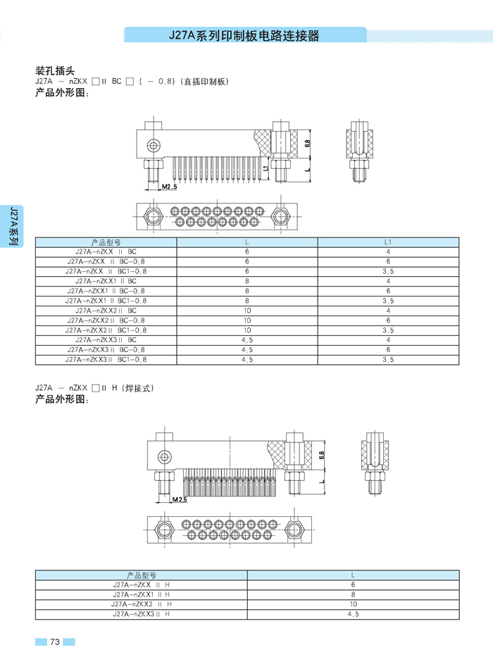 J27A系列印制板電路連接器,符合IEC130標(biāo)準(zhǔn)和MIL-C-55302標(biāo)準(zhǔn)要求,接觸數(shù)目有17,29,41,53,65,72,84,96芯等規(guī)格,連接器尾端端接形式分為直插印制板式、彎插印制板式、焊接式和壓接式,安裝鎖緊形式靈活,定位導(dǎo)向裝置有36種方位組合,具有很強(qiáng)的防誤插功能。http://www.jshkdz.com/product.asp?parentid=2