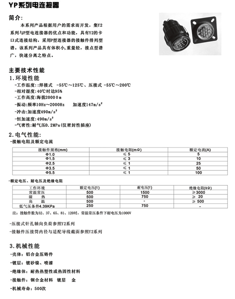 根據用戶的需求而開發,集Y2系列與P型電連接器的優點和功能,具有Y2的卡口式連接結構,采用P型連接器的接觸件排列型譜。該系列產品具有體積小,重量輕,接點型譜廣,快速分離之特點。