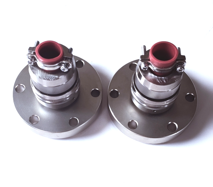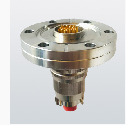 CF35真空法蘭32芯玻璃燒結密封插座,CF35是標準尺寸大小,在盲板上設計了32芯座殼體,采用特殊加工工藝,真空