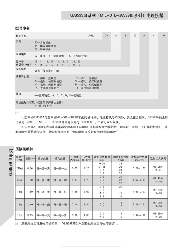 J599/26WB35PN+J1784A高密度航空插頭,是GJB599A標準,參照美軍標(MIL-DTL-38999K)III系列的要求,采用三頭 螺紋連接,并帶防松脫機構(gòu),尾部有三防性能,接觸件壓接可以取卸,插頭與插座對接有防誤插功能。殼體有金屬和復(fù)合材料。 適合用于風(fēng)沙和潮濕的場合,航空、航天電子設(shè)備上使用。