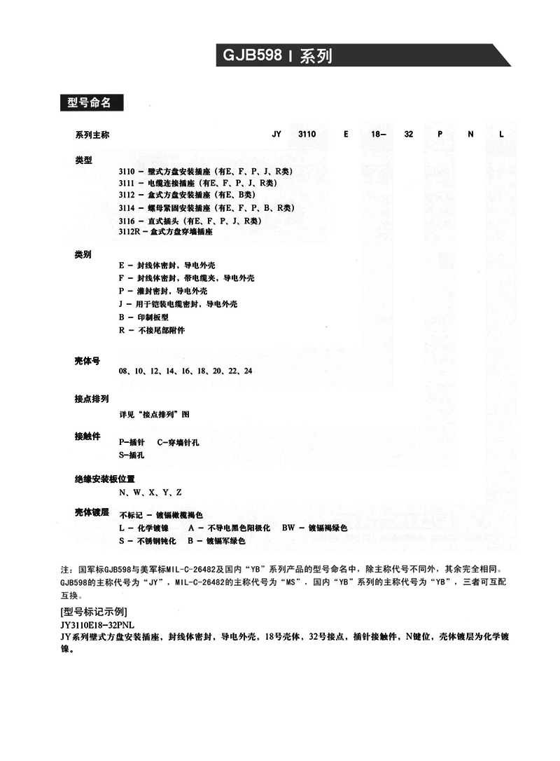 * 廣泛應(yīng)用于各類(lèi)軍用、民用設(shè)備中 ——?dú)んw:鋁合金 ——鍍層:不標(biāo)記 鍍鎘橄欖褐色,導(dǎo)電外殼 L 類(lèi) 化學(xué)鍍鎳,導(dǎo)電外殼 A 類(lèi) 黑色陽(yáng)極化,非導(dǎo)電外殼 ——絕緣體:氯丁橡膠 ——封線體和密封圈:硅橡膠材料 ——接觸件:銅合金鍍金 ——隨機(jī)振動(dòng):頻率10~2000Hz 加速度147m/s2 ——沖擊:加速度490m/s2 ——機(jī)械壽命:500次 環(huán) 境 性 能: ——使用溫度:-55℃ ~ +125℃ ——相對(duì)濕度:40℃時(shí),達(dá)95±4% ——耐鹽霧:鍍鎘:500小時(shí);鍍鎳:48小時(shí) ——密封性: 封線體密封 泄露率小于4.6×102 Pa cm3/s 燒結(jié)密封 泄露率小于0.1Pa cm3/s http://m.xinchunsheng.com/Product/yuanxinghangkongchatouhangkongjiechajian/