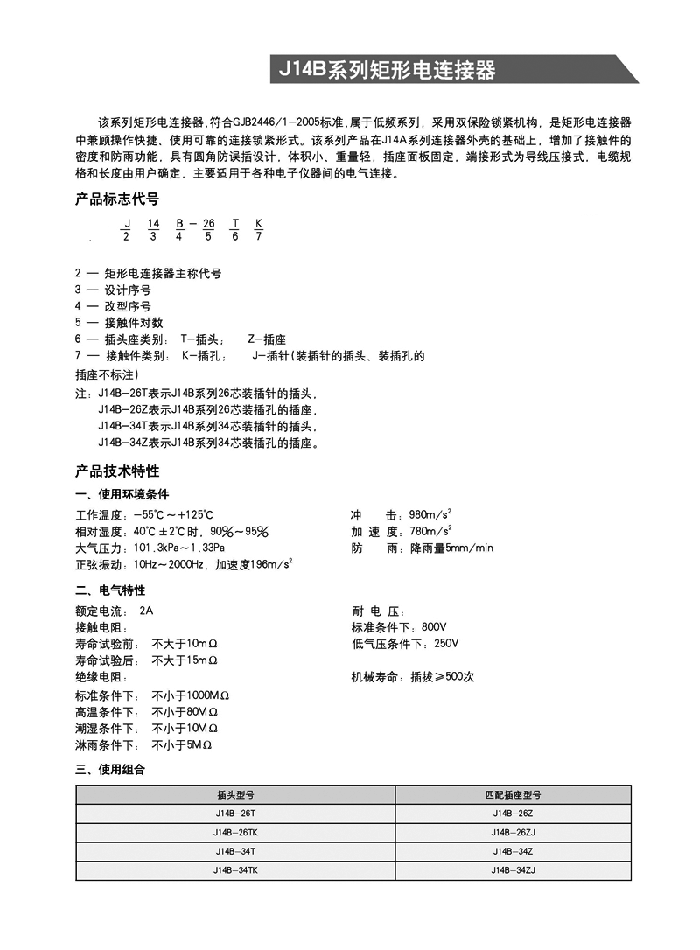 在J14A系列連接器外殼的基礎上,增加了接觸件的密度和防雨功能。帶電纜,端接形式為壓接,電纜規格和長度由用戶確定。
