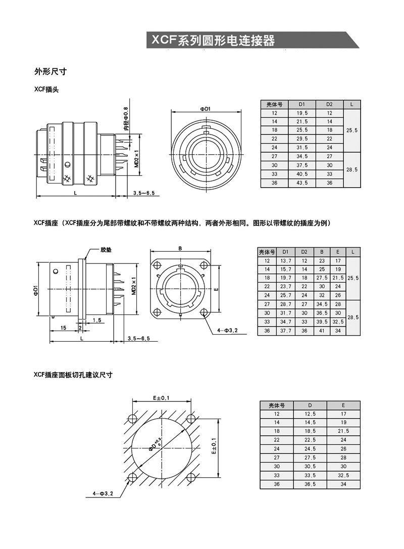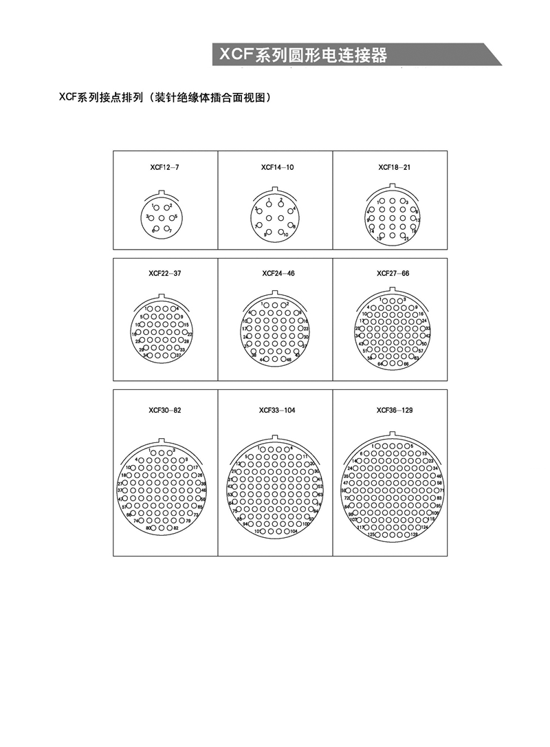 XCF系列高密度航空插頭, XCF系列軍用圓形電連接器 ,等效于MIL-C-38999-I系列標準,具有密度高、體積小,重量輕等特點,殼體為高強度鋁合金材料,插頭、插座既可裝針也可裝孔,其連接方式為卡口式快速連接和分離,操作方便,連接牢靠,抗振耐沖,接觸件有焊接式,其中插孔為線簧孔,具有插拔柔和、接觸電阻小、防潮、防鹽霧、防霉菌、防淋雨等特性,主要應用于艦船等各種惡劣環境領域,也可應用于航空、航天、兵器、野戰通信等軍事領域以及郵電通訊、鐵路指揮系統、計算機、航海和各種儀器、儀表的線路連接。