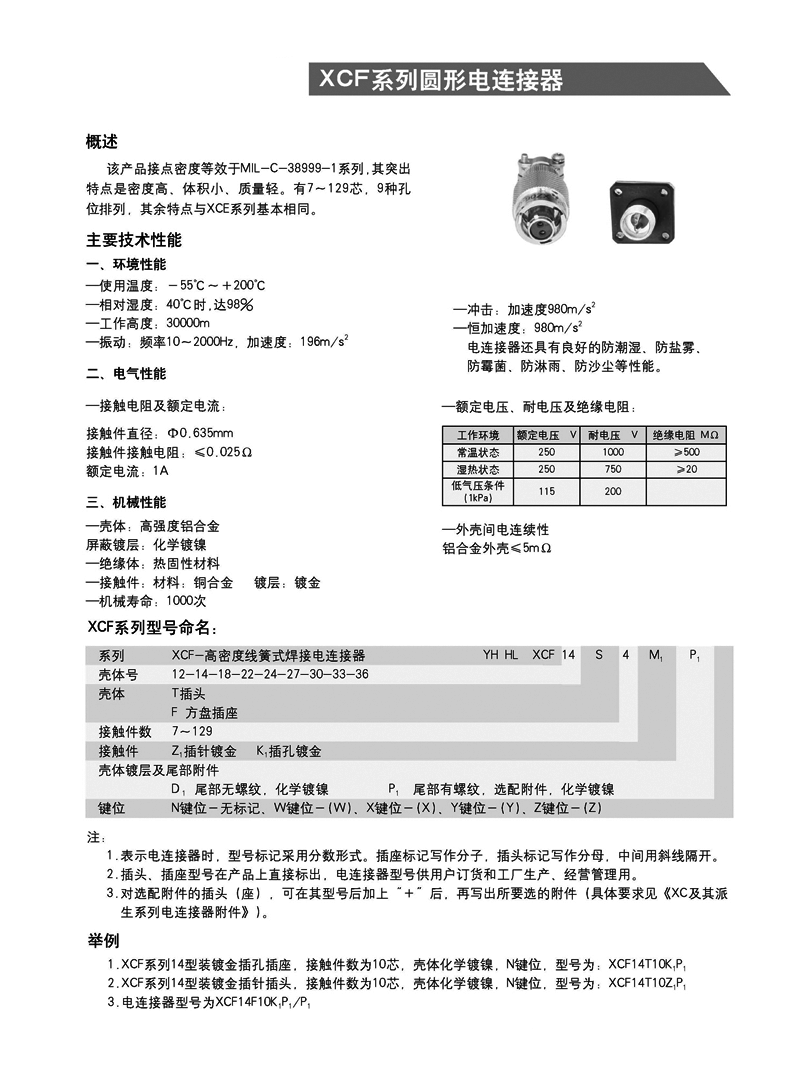 XCF系列高密度航空插頭: