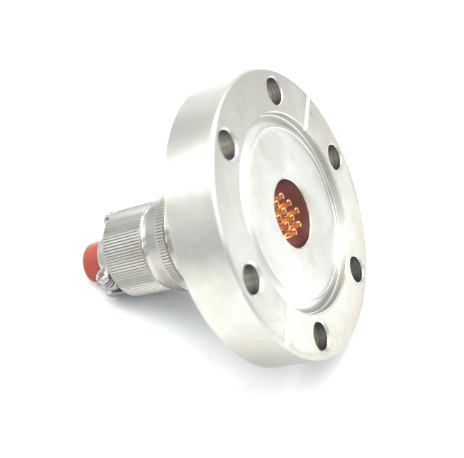 CF35-1210ZJH玻璃燒結(jié)密封插座廠家 CF35是一塊標(biāo)準(zhǔn)法蘭,尺寸大小是一樣的,標(biāo)出尺寸。在盲板中間設(shè)計(jì)不同芯數(shù)的插座,最多芯數(shù)61芯,現(xiàn)規(guī)格是10芯, 額定電流5A,插針表面鍍金,接觸電阻小,傳導(dǎo)快。插座可以里外帶插頭,插拔方便,便于維修?ǹ谑竭B接,穩(wěn)定可靠,防止 松動(dòng)。