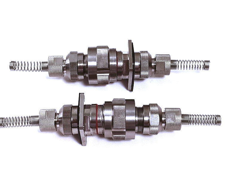 RJ45網口太網防爆連接器,外殼全金屬材料,有鋁合金和不銹鋼選用。不用的時候,有專用的防塵蓋,插座和插頭連接后