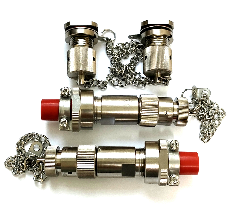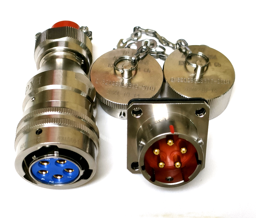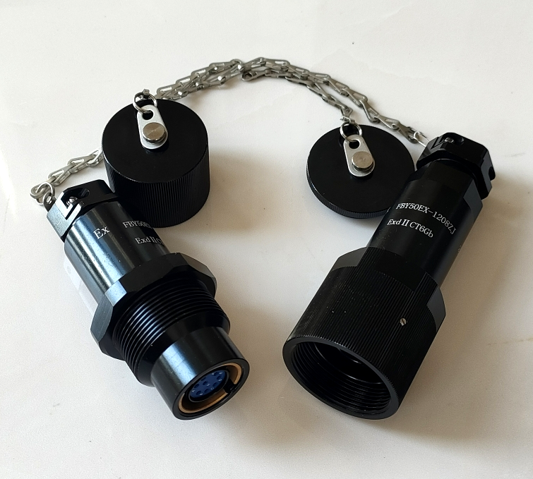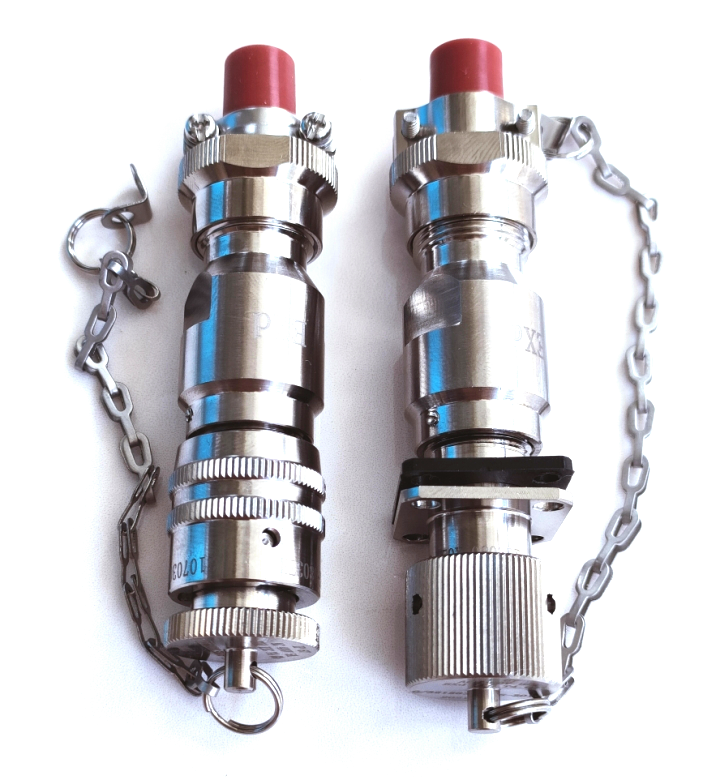 誰家生產的防爆連接器型號種類多? 自從公司成立了新產品開發組,防爆連接器品種層出不窮,芯數不一樣,電流大小不一樣,尺寸大小也不一樣,客戶 使用的要求不一樣,有固定式,對接式,連接方式有螺旋卡口式,螺紋連接,直插鎖緊,客戶根據喜歡選用。該系列 電連接器分隔爆型,無火花型,密封型,目前尺寸大小借用GJB1001A標準,壁體加厚,每個連接處有多層密封設計, 杜絕一切可能的滲漏引起的爆炸。殼體號從06號~24號,從1芯~85芯,電流從5A~800A,,顏色有銀白色,黑色,軍 綠色。