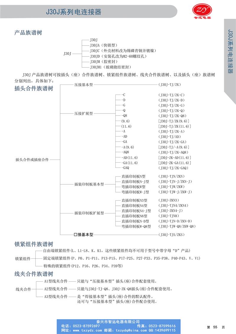 怎樣快速選用J30J微矩形電連接器? 怎樣快速選用J30J微矩形電連接器?沒有用過或者用得少的客戶想快速選好不是一件容易的事情,該產品有點復雜。為了幫助大家 小編簡單介紹介紹。建議從以下幾個方面考慮:1.外形大小變化。2.端接形式。3.顏色的變化。4.材料的變化。首先先了解產品本身, 高密度,高可靠,小型號產品,采用絞線彈性插針(麻花針),導線截面積適宜0.1mm2~0.15mm2,最小0.07mm2線。符合GJB2446 要求,等效于美軍標MIL-DT-83513.規格有9芯-15芯-21芯-25芯-31芯-37芯-51芯-66芯-74芯-100芯微矩形電連接器。第一步要考慮產品 使用環境,考慮選什么材料,有鋁合金,銅,不銹鋼材料。一般是鋁合金鍍鎳,輕巧而光亮.J30J-TJ/ZK固定式配套使用,是常用基本型。 材料沒有問題,考慮端接形式,是用壓接式還是焊接式根據自己的愛好,焊接有點麻煩,焊接技術要熟能生巧。壓接方便快捷,要有壓 接工具。壓接式無需字母表示,焊接用S表示,在這當中考慮印制板焊接,有兩種,直式焊接用N表示,W表示90°彎針焊接。其次考慮 線纜與線纜之間的連接,線焊接或壓接后,規定好線的長短,測試,打標完成一整套流水線。為了防止焊線被松動,可以考慮帶夾線尾部, 有直式和彎式,用A表示,屬于快鎖型,分A1,A2,A3線夾。甩線的方向增加彎式線夾,配有金屬防波套,同側有一個出線口,夾板與殼體 之間用螺釘固定。用字母C和C1表示。插座和插頭對插后,預防松動,接觸不良,兩邊還要螺絲連接,插座用P表示,插頭用L表示,型號 多樣,尺寸大小也不一樣,(P1,P2,P25...和L1,L7,L14...)客戶在選用時候這方面無需考慮,只要把尺寸說清楚,廠家會配套好。插座的 大小不是固定不變的,除基本型,夸展型J表示,還有特殊型插座9.6,插頭11.6,用Q字母表示。在殼體與殼體對插后,防止螺釘轉動, 在外殼法蘭盤安裝孔處開槽,用字母D表示。最后就是特殊插座要求密封,采用玻璃燒結工藝,密封性能好,訂貨時用M表示。成本高, 價格不低。最近為適應市場開發了一些大電流混裝電連接器,導線線芯截面積2.0mm2~3.0mm2線大電流,開發的產品有2芯~9芯,每芯 大20A,大電流插孔S,大電流插針P表示。為表達更清楚,客戶可以通過下面表格和圖片對照理解: