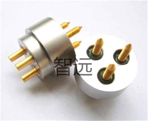 玻璃燒結真空密封端子 玻璃燒結真空密封端子形狀是各式各樣,尺寸大小沒有固定,是客戶根據使用環境,空間大小自己制定,但密封模式都 是玻璃燒結工藝,燒結方式有兩種:1.壓強大一般是點式燒結,在整體毛呸上均勻分布打眼,玻璃粉末燒結的面積小,抗震能 力強。還有一種耐電壓高,絕緣電阻高,采用整體燒結,玻璃體滿燒,漂亮平整,各有特長。表面處理有鈍化,鍍鎳,鍍金, 造價有差距,使用戶請根據實際情況選擇,建議不要盲目追求。下面是我公司做個的產品圖樣: